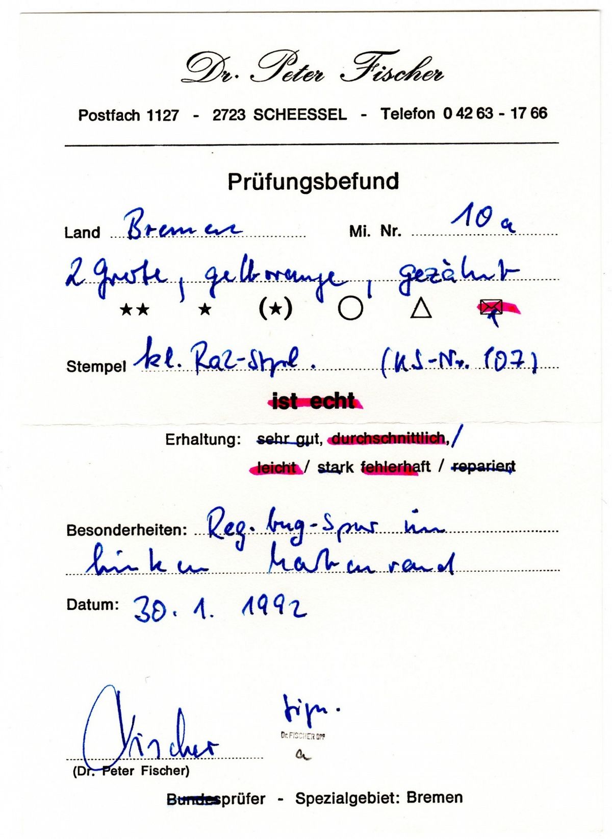 | Signatur | Attest / Befund | Prüfer | Jahr |