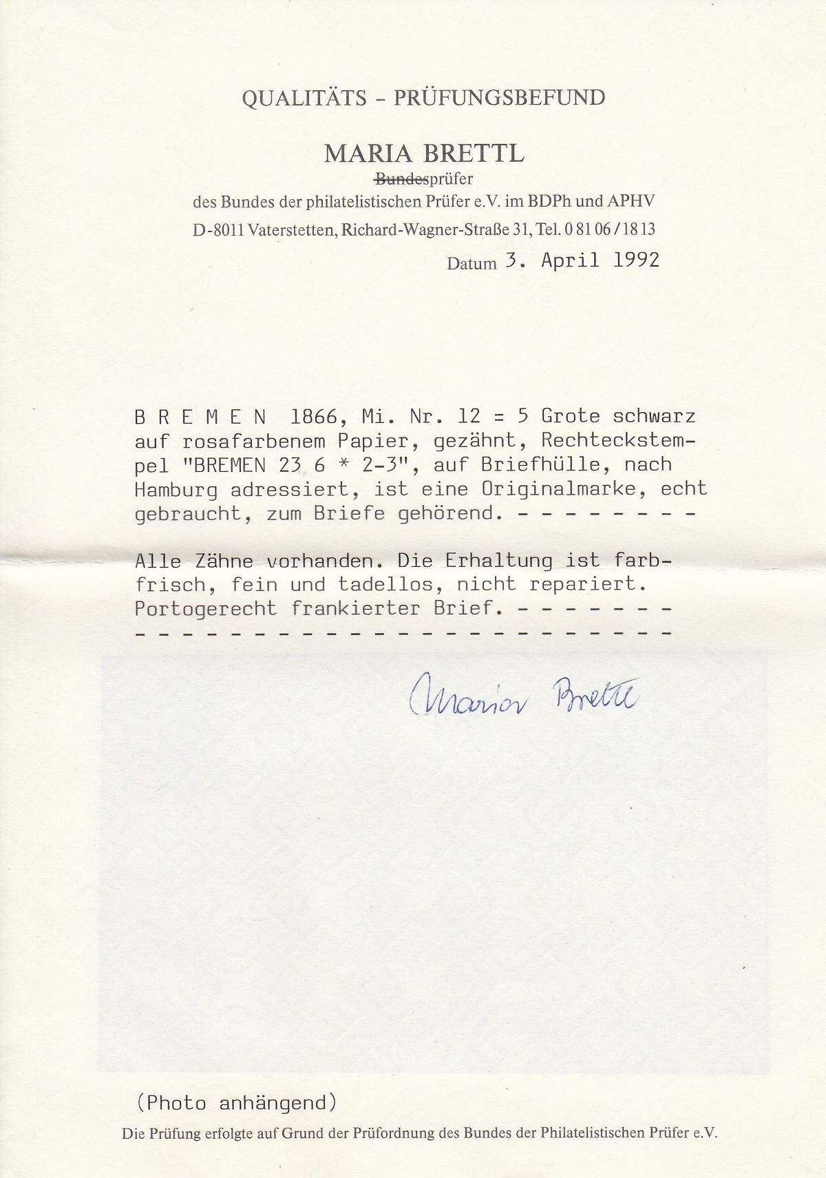 | Aufgabestempel | BREMEN |