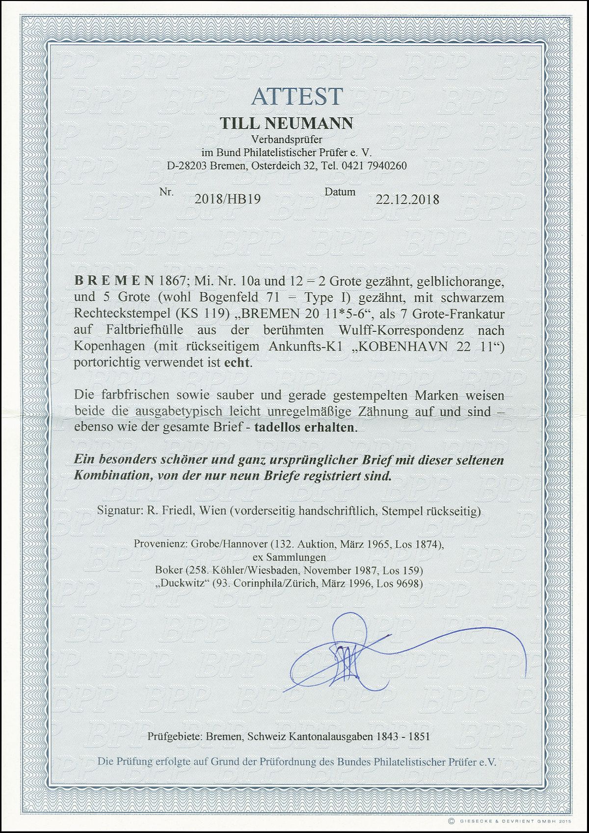 Nun haben wir uns entschlossen, die Rubrik "Auktionen/Provenienzen" ab sofort nur noch gegen eine Aufwandsentschädigung sichtbar zu machen. Ein persönlicher Zugang kann für EUR 30,- pro Kalenderjahr unter info@bremen-archiv.de angefordert werden.