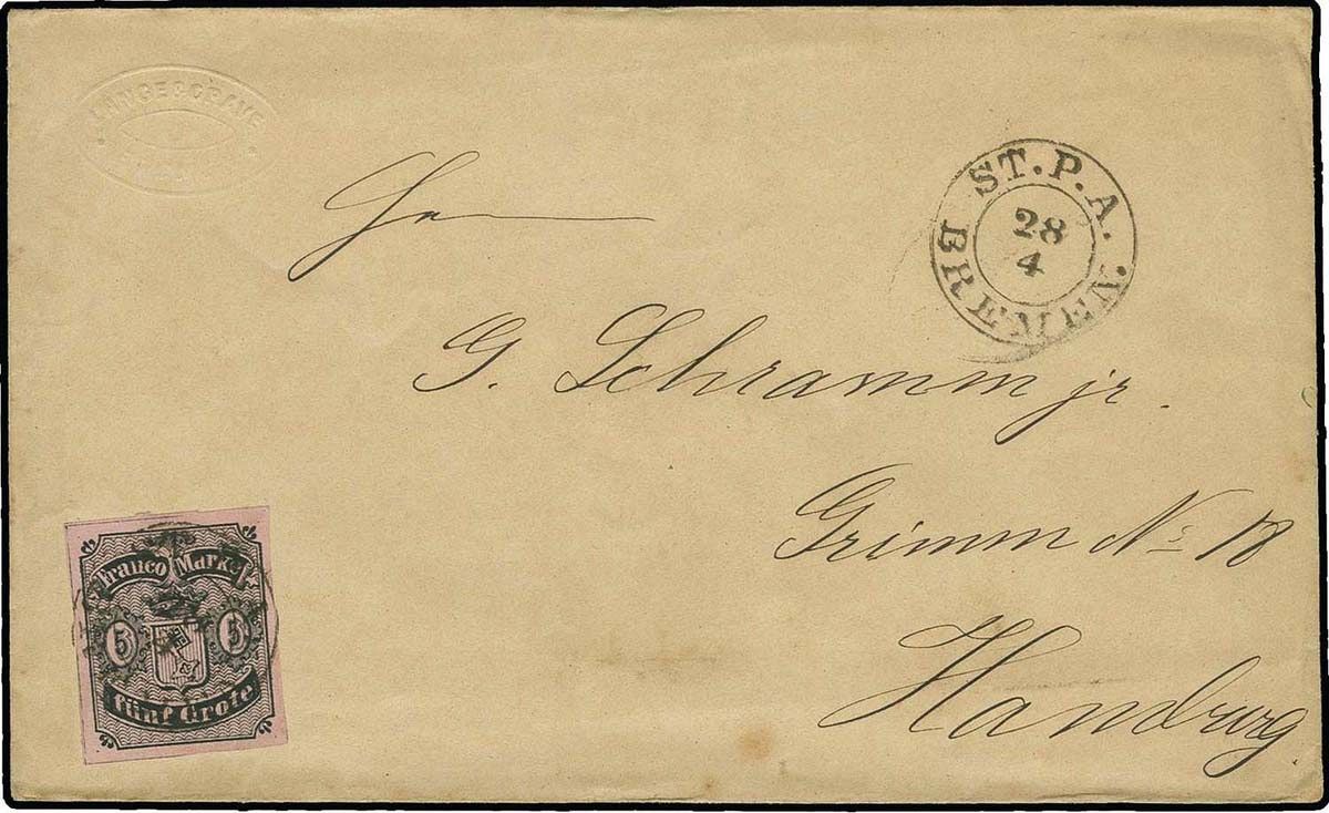 | Aufgabestempel | ST.P.A. BREMEN. |