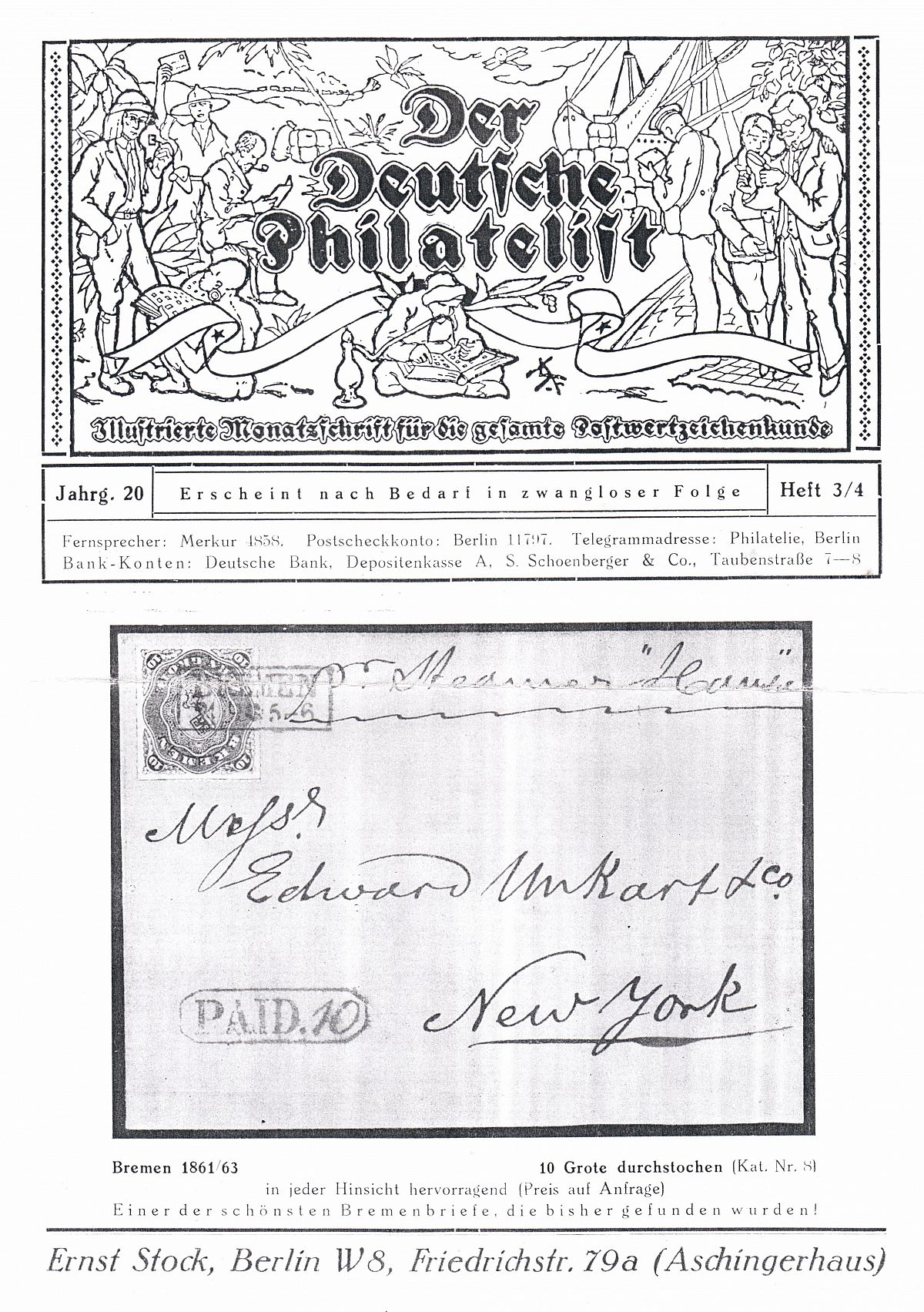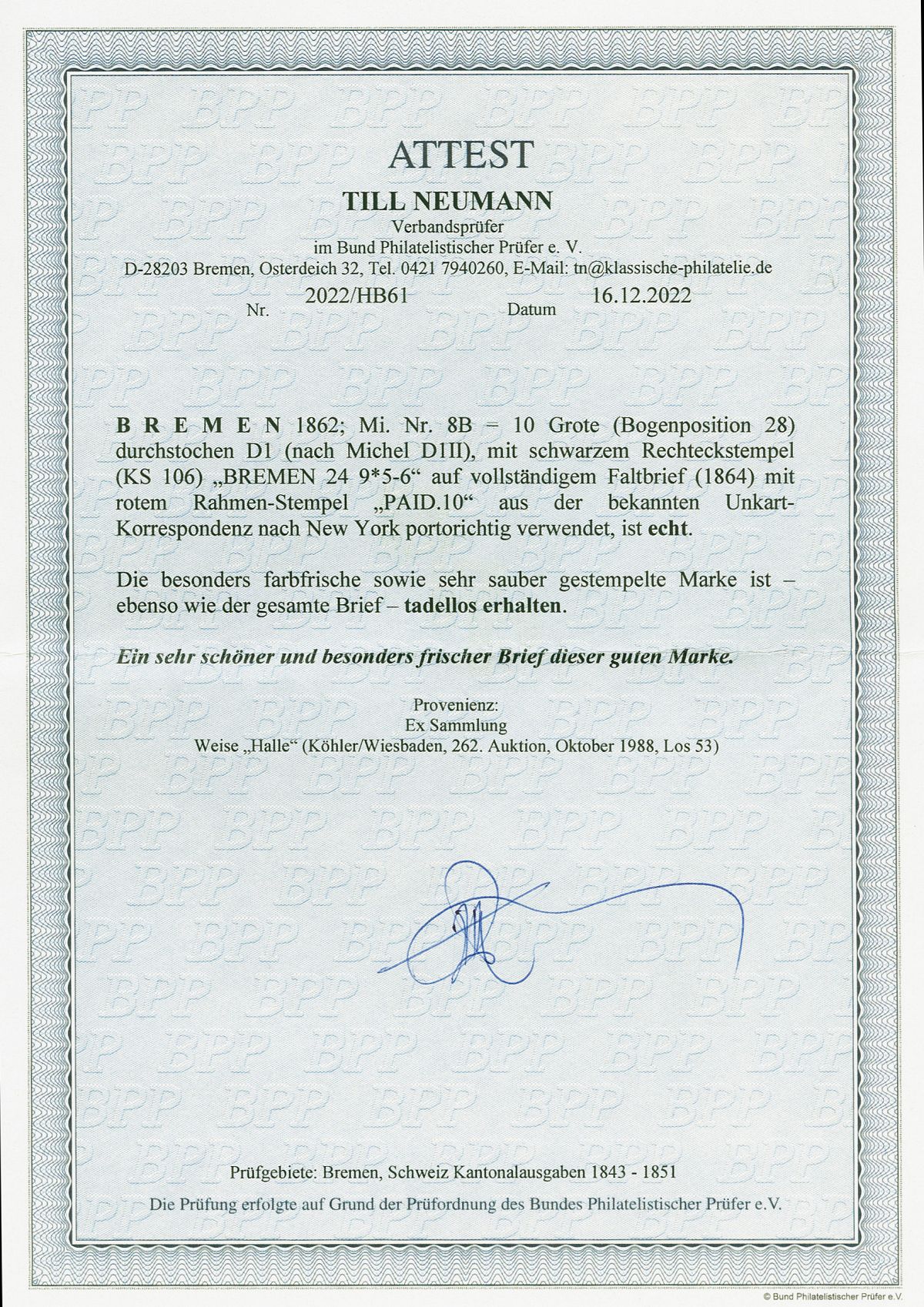 Nun haben wir uns entschlossen, die Rubrik "Auktionen/Provenienzen" ab sofort nur noch gegen eine Aufwandsentschädigung sichtbar zu machen. Ein persönlicher Zugang kann für EUR 30,- pro Kalenderjahr unter info@bremen-archiv.de angefordert werden.